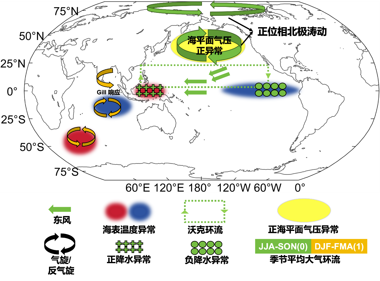 图1 前期夏季北极涛动对次年春季南印度洋偶极子的跨季节影响机理