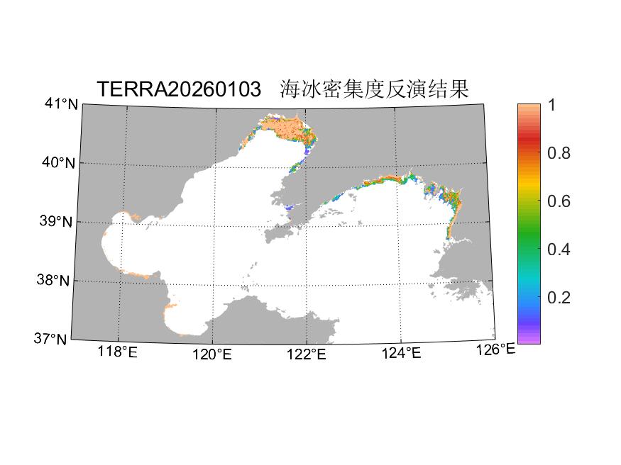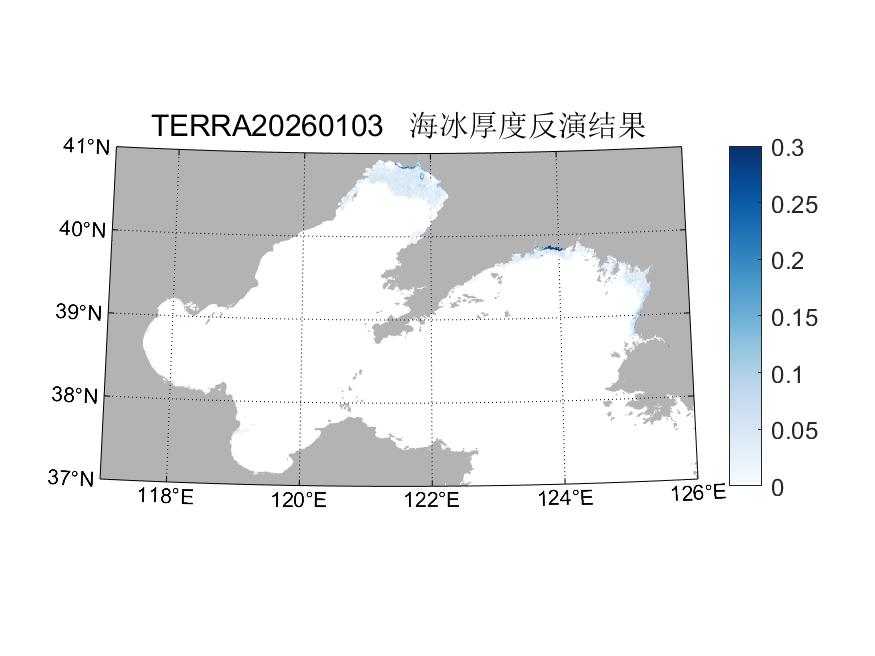 渤海每年冬季都出现海冰,渤海的海冰数据季节性海冰,当冰情严重时,会给沿海生产、航运和养殖业带来灾害性的影响。基于AQUA、TERRA/MODIS L1B所反演的渤海海冰厚度和密集度数据产品,由中国海洋大学极地海洋过程与全球海洋变化重点实验室(POGOC)、教育部物理海洋重点实验室(POL)开发研制。海冰厚度反演算法是基于Grenfell(1991)提出的exponential model(EM)基础上发展的算法(谢峰,2006;Su and Wang,2012),根据渤海水文特征对其又进行了一系列改进,提升了高浓度泥沙悬浮物海区内海冰厚度的反演效果(朱星源等,2022)。