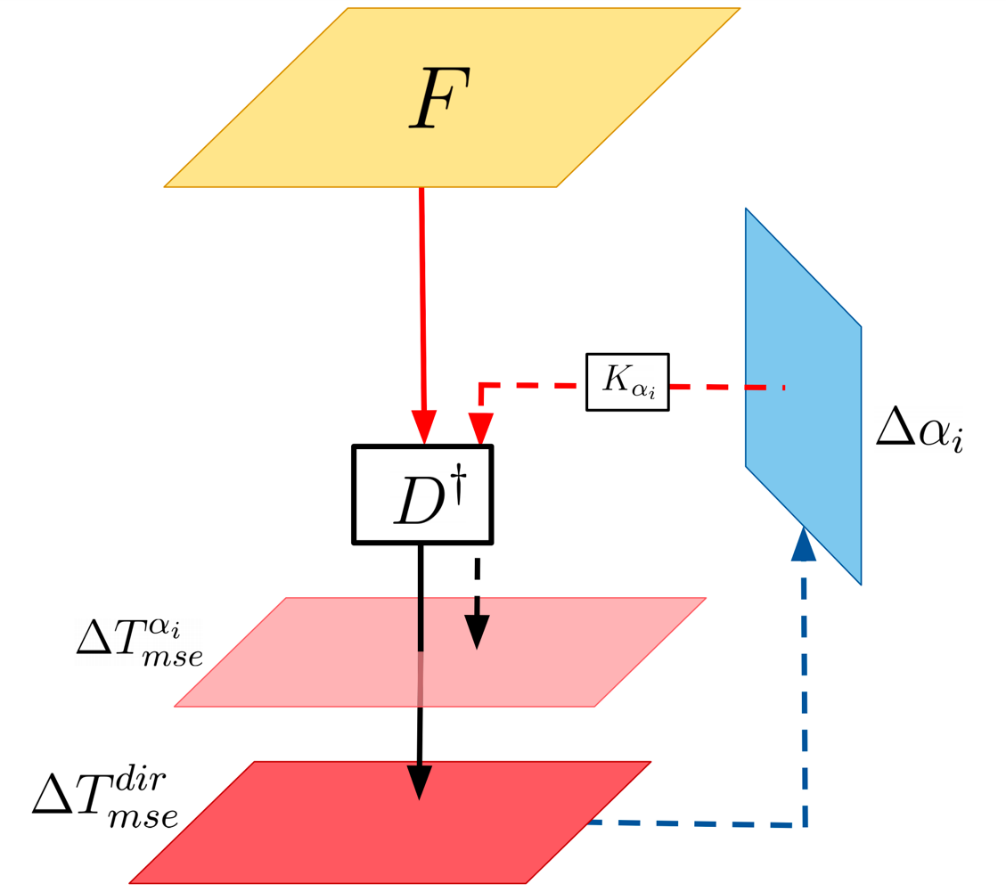 图1:利用“扩散核”D将具有空间结构的湿静力能(mse)响应完整地分解为直接效应与间接效应的示意图。直接响应表征外部强迫项F通过扩散核D对mse型态产生的直接贡献;间接响应反映由反馈过程αᵢ 通过其对应的反馈核Kαᵢ 所产生的辐射反馈贡献。